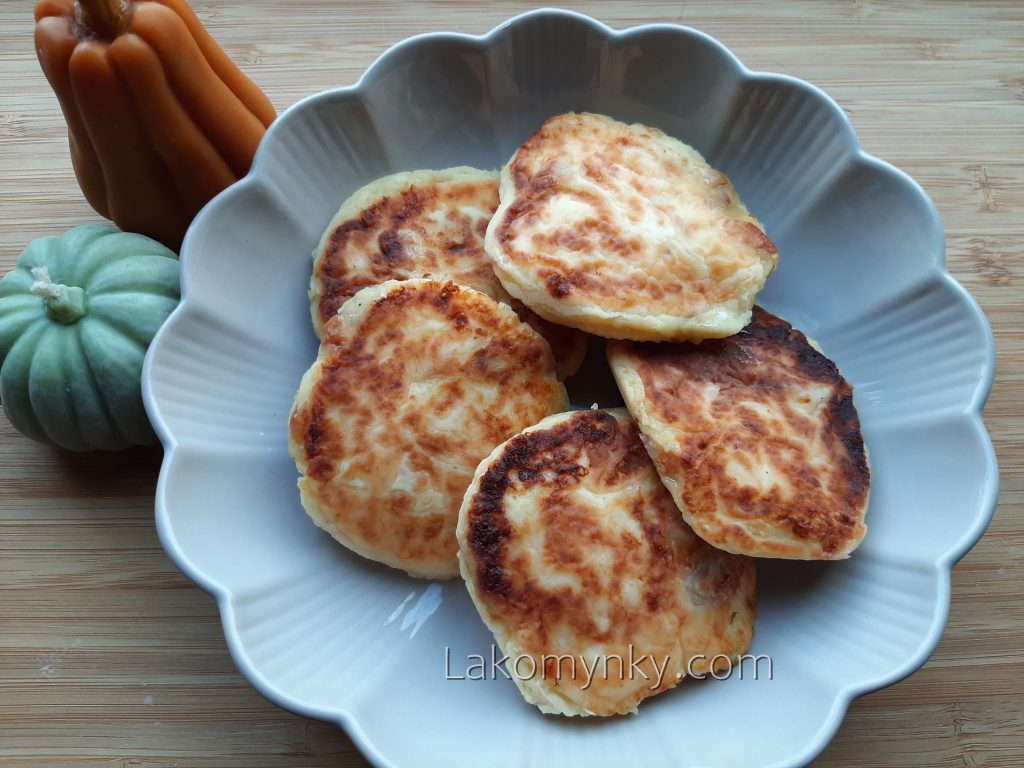 Сир змолоти, додати все решта, сформувати кульки, обмакати в борошні і смажити на олії на сильному вогні, промакати на паперових рушничках. Виходить 14 шт.