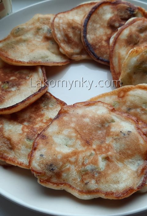 Збити вінчиком блендера молоко, воду, борошно (пересіваючи через сито, щоб не утворились комки), цукор, сіль, яйця та розтоплене вершкове масло до однорідної суміші і посмажити.