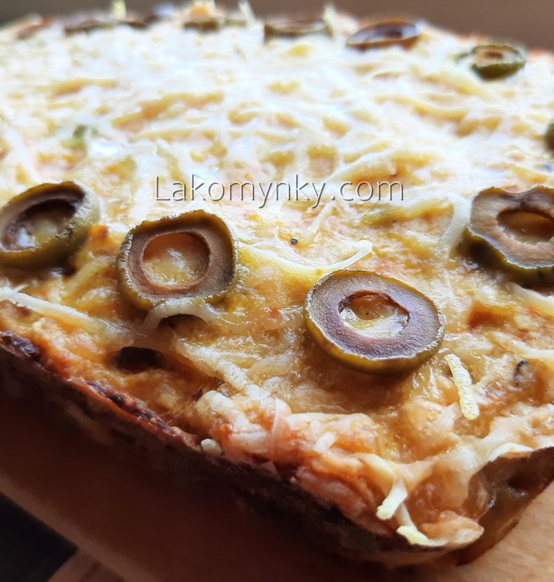 500 г курячого філе1 морква2 цибулини1 скл. молока0,5 п. цибулевого крекеру3 яйцяСіль, перець2 ст. л. пармезану70 г зелених оливок Змолоти з філе з дрібно потертою і потушкованою морквою з цибулею. Змолоти розмочений в молоці крекер (молоко, що залишилось не додавати), додати, яйця, спеції, порізані кільцями оливки, вимішати. Наповнити помащену і вистелену пергаментом прямокутну форму, посипати …