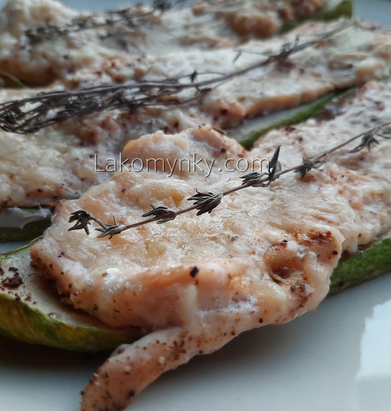 Курячі відбивні запечені на кабачках