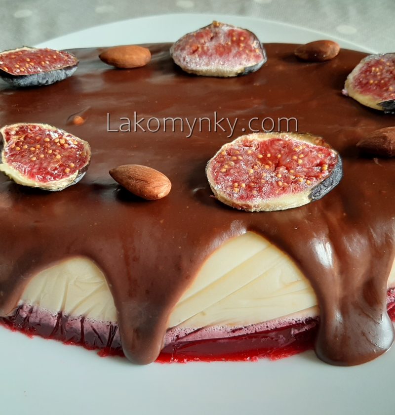 Тісто:70 г маку250 мл молока250 г волоських горіхів200 г масла1 скл. коричневого цукру6 яєць200 г сметани250 г борошна1 п. порошку до печива1/4 ч. л. солі1 п. ванілі Маса:250 г рікоти500 г маскарпоне (філадельфії, буко або іншого вершкового крем-сиру) 350 г домашньої жирної сметани4 ст. л. цукрової пудри250 г малини50 мл коньяку Помадка:150 г сметани150 г білого шоколаду Мак …